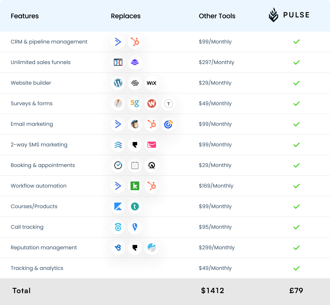 Total: $350+/month, plus the cost and complexity of integrating all these platforms.