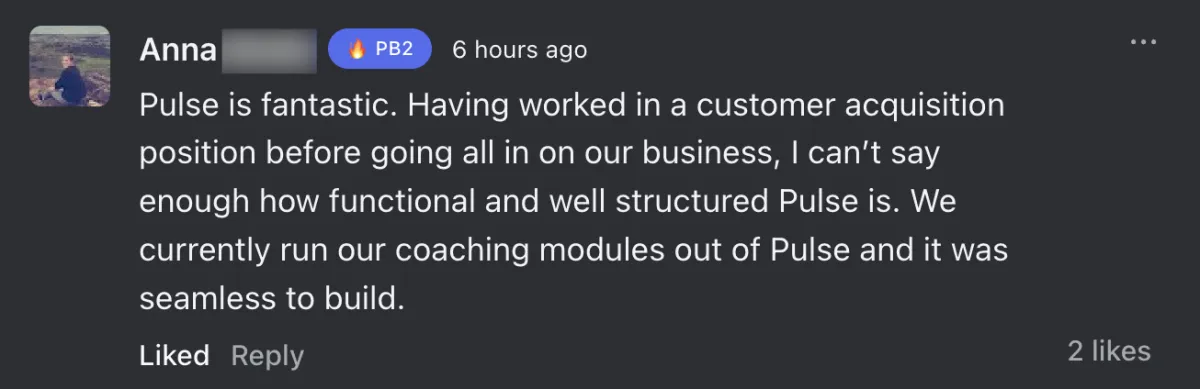 We've built as much as we can for you to minimise the tech headache, but Pulse also includes 2 x 1 hour guided onboarding calls that you can use any time, as well as 24 hour in-app support via live chat, so you're never stuck.